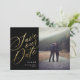 Esta fotografia elegante e clássica salve o cartão de data apresenta sua foto com um roteiro de caligrafia romântico em folha de ouro falsa. Adicione detalhes adicionais ao reverso ou simplesmente exclua o texto de amostra para mantê-lo vazio.