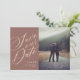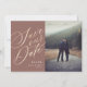 Esta fotografia elegante e clássica salve o cartão de data apresenta sua foto com um roteiro de caligrafia romântico em folha de ouro falsa. Adicione sua foto, detalhes e detalhes adicionais ao reverso ou simplesmente exclua o texto de amostra para mantê-lo vazio. Disponível em cores adicionais.