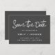 Cinza de carvão (Cinzas) Script Mão Mínimo Moderno e Elegante Guarde o Cartão-Postal de Casamento de Data. O cartão de convite para salvar a data inclui a tipografia moderna de script com letra manuscrita com um design chic e simples ao qual você pode adicionar sua fotografia personalizada de noivado.