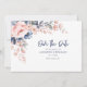 Casamento floral rosa elegante salve o cartão de data que você pode personalizar facilmente com seus detalhes clicando no botão "Personalizar". Apresenta a tipografia popular moderna com texto de script a preto sobre fundo branco DICA: produtos correspondentes disponíveis abaixo para sua conveniência