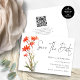 Script De Código QR Do Boho Red Wildflower Imprimível Salva A Data. Disponível digitalmente e impresso. Adicione seu código QR ao seu site de casamento ou simplesmente exclua-o se não for necessário. Um design floral minimalista com Save The Date em um script moderno set. O resto do texto que você pode personalizar facilmente. As cores do texto e do plano de fundo podem ser alteradas se você desejar por meio da opção editar mais.