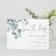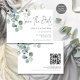 Script de Código QR do Eucalyptus de Cor Watercolor Moderna Salva A Data. Adicione seu código QR ao seu site de casamento no verso substituindo o URL de amostra pelo seu próprio URL de site e o código QR de amostra será atualizado automaticamente para o seu próprio site ou simplesmente exclua-o se não for necessário. Um design botânico minimalista com Save The Date em um script moderno set.O resto do texto que você pode personalizar facilmente. As cores do texto e do plano de fundo podem ser alteradas se você desejar por meio da opção personalizar mais. Também disponível como download digital.