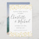 Com nomes de estilo de assinatura e confetes de corações dourados, este elegante cartão de aviso com antecedência pode ser personalizado com as informações da sua data especial em letras cinzas elegantes e a sua foto especial no verso. Concebido por Thisisnotme©