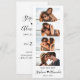 Bookmark de Foto Minimalista na moda Salve o cartão Data. Possui caligrafia elegante manuscrita ou roteiro de tipografia com amor, coração motif, entre os nomes e 4 fotos. Estes marcadores de fotos são uma forma perfeita de anunciar seu dia especial a todos os seus amigos e familiares.