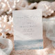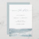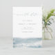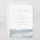 Anuncie sua celebração à beira-mar com estilo com este elegante save the date da coleção Low Tide da Navy Road Creative. Uma fonte de script arejada flutua sobre a suave aquarela do oceano em tons azuis enevoados, combinada com texto minimalista moderno para um visual fresco e costeiro. Ideal para casamentos na praia, fugas e eventos de destino.