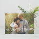 Script de Pincel Moderno Salva o Cartão com fotos do Casal de Noivado de Data - Script Branco com Folhas