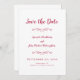 Cartões salve a data elegantes e delicados em belos vermelhos magenta e brancos são clássicos, formais e eternos. A design romântica sem bordas permite que você escolha facilmente a forma de papel para o seu anúncio de noivado. Duas decorativas florescem cada uma contendo um solteiro cardíaco delicadamente com o nome da noiva e do noivo. Para obter resultados ideais, pule as linhas e capitalize como na amostra. Envie perguntas ou solicitações personalizadas para invitationsuites@gmail.com