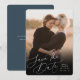 Um design simples e elegante com seus detalhes de casamento alinhados na parte inferior, esta foto vertical salva a data com um guião delicado e letal. Personalize com seus nomes, data do casamento e local ao lado, e adicione detalhes adicionais às costas.