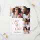 Casamento moderno salve o cartão de anúncio de data com uma colagem de suas fotos favoritas (3 na frente, 1 na parte traseira), "Salve a data" escrito em um roteiro de falso na moda rosa de ouro e seus nomes, data de casamento, local e site em uma tipografia simples e mínima.