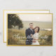 Celebre seu noivado com este elegante ouro falso e salve o cartão de data. Completamente personalizável - carregue sua foto e altere o texto na frente e de volta para atender às suas necessidades. Ambos os lados apresentam uma bela caixa de ouro falsa e uma letra branca. Trendy and na moda, porém simples e eterno - um cartão de data salvo que se coordena lindamente com a maioria dos estilos e temas de casamento de hoje.