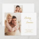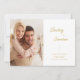 Isso salve o cartão de data mostra um design moderno minimalista e é acentuado com texto simples de caligrafia manuscrito em ouro. O cartão oferece duas fotos, uma na frente e outra atrás. O texto personalizado no verso permite adicionar mais detalhes do casamento.