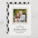 Foto de na moda Salve a placa de data com sua foto cercada por uma borda, abaixo das quais estão as palavras "Salvar a data" em uma máquina de escrever como font e os nomes dos casais em um script de cor cinza escura, tudo em um fundo esbranquiçado. Os recursos traseiros da placa se sobrepõem às linhas esbranquiçadas em um fundo de cinza escura. Personalize-o substituindo o texto do marcador de posição e substitua a foto do marcador de amostra/marcador de posição por sua própria foto. Para obter mais opções, como alterar a fonte e seu tamanho/cor ou o espaçamento entre letras, clique no botão "Personalizar". *Observe que a Marca d'água do Zazzle que aparece na visualização de zoom NÃO aparecerá no produto impresso final. © Rosewood e Citrus