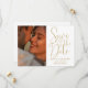 Este elegante casamento dourado salve o convite da data pode ser personalizado com suas 2 fotos especiais e informações do dia do casamento. Projetado por Thisnotme©