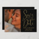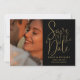 Este casamento de guião preto e dourado, exceto o convite de data, pode ser personalizado com as suas 2 fotografias especiais e informações do dia do casamento. Projetado por Thisnotme©