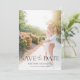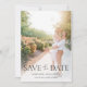 Casamento elegante e moderno Salve o cartão de encontro com uma foto noivado da noiva e noiva na frente.
