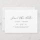 Este elegante roteiro horizontal para salvar o cartão de data é perfeito para um casamento simples. A design a preto e branco minimalista apresenta tipografia romântica rico com estilo de vidro moderno. Personalizável em qualquer cor. Mantenha o design mínimo e a classe, como está, ou personalize-o adicionando seus próprios gráficos e trabalhos de arte.