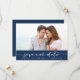 Salve personalizável o lançamento de data com script manuscrito no fundo azul do marinho. Outras cores e itens semelhantes estão disponíveis.