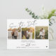 Um casamento com um guião de caligrafia simples, preto e branco, moderno, minimalista de tendências, salve o cartão com 3 fotos de colagem. ++++++++++ Adequado para casais informais de praia de Verão em zonas costeiras. +++++++++ Fácil de personalizar com suas fotos, d, eatils e site em ambos os lados.