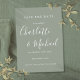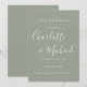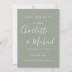 Projetado para coordenar com a nossa coleção de casamento Signature. Apresentando nomes de estilo de assinatura, este sábio elegante de prata salvo o cartão de data pode ser personalizado com suas informações especiais de dia de casamento em letras brancas quic. Você pode personalizar o fundo do seu tema de cor do casamento. Projetado por Thisnotme©