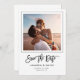 Anúncio de Salvação de Data Minimalista Moderno com tipografia elegante e moderna de letra à mão, sua foto pessoal dentro de uma moldura fina e elegante ao lado do seu nome e data do casamento.