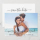 Modern Trendy Calliographic Foto Do Casal Do Script Salve O Cartão De Anúncio Do Noivado De Data