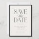 Script Simples de Caligrafia Branca Preta Elegante Salve a Data com uma borda sólida em negrito, ao redor do tipo moderno que inclui script de caligrafia.