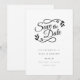 Este simples cartão de salvar a data em preto e branco apresenta um belo texto de salvar a data com um motivo de folha, definido acima dos seus detalhes em um texto moderno e elegante.
