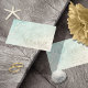 Uma textura aquosa nos tons macios do mar e da areia é o fundo de elementos marinhos, como o peixe-estrela e as conchas, que são aperfeiçoados com ondas de espuma marinha para criar os pedaços desta suíte de casamento. O cartão Salvar data do casamento mostrado aqui contém todas as informações acima, além de uma modelo para adicionar facilmente suas próprias informações pertinentes. O texto opcional "Salvar a Data", em uma fonte moderna e aberta, tem um acabamento de folha de ouro e efeito de sombra da tarde. Procure ID837 para ver todas as peças de coordenação neste conjunto.