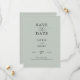 Belo, elegante e simples vidro marinho verde Salve a data com uma bela caligrafia e uma moderna fonte negra. Totalmente personalizável com seus nomes, data e mais informações na frente.