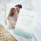 Casamento costeiro elegante, salvar a data mostra um gradiente verde-aquarela puro-mar ao longo do fundo com uma curva graciosa que evoca o abismo e o fluxo do mar. Os detalhes do seu casamento aparecem em letras clássicas minimalistas com sotaques manuscritos. Adicione uma foto vertical ou orientada para retrato ao fundo.