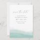 Casamento costeiro elegante, salvar a data mostra um gradiente verde-aquarela puro-mar ao longo do fundo com uma curva graciosa que evoca o abismo e o fluxo do mar. Os detalhes do seu casamento aparecem em letras clássicas minimalistas com sotaques manuscritos. Use o verso para compartilhar informações adicionais com seus convidados.