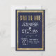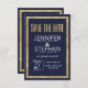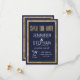 Elegante, na moda e moderno faux imprimiu contorno de sequin em ouro e fundo azul marinho com falso impresso de folha de ouro, cartão de casamento "Salvar a Data". Este design clássico e sofisticado é perfeito para o casal de competição de tendências e na moda. Personalize com sua própria mensagem na frente, assim como um monograma personalizado inicial no verso. Todas as impressão de fotos.