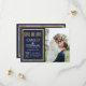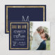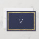 Elegante, na moda e moderno faux imprimiu contorno de sequin em ouro e fundo azul marinho com falso impresso de folha de ouro, cartão de casamento "Salvar a Data". Este design clássico e sofisticado é perfeito para o casal de competição de tendências e na moda. Personalize com sua própria mensagem na frente, assim como um monograma personalizado inicial no verso. Todas as impressão de fotos.