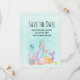 Salve a placa de data com uma ilustração de aquarela fofa. 2 sereias nadando sob o mar entre a flora. Uma água-viva feliz flutua junto com eles. Querido e ilustração encantadora.