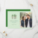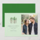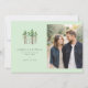 This wedding save-the-date card features a split layout with a charming illustration of stylized pine trees on the left, set against a soft mint-green background. The right side showcases a romantic photo placeholder of a couple walking together, evoking warmth and intimacy. The design uses a serene color palette of greens and earthy browns, combined with clean, modern typography that ensures clarity and elegance. Perfect for couples seeking a harmonious blend of nature-inspired art and personal imagery, this card sets a tranquil and celebratory tone for their special day.