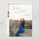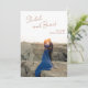 Casamento moderno salve o cartão de data com um simples design com seus nomes em um roteiro elegante no canto superior esquerdo e seu encontro, cidade e estado abaixo à direita, sobre sua foto vertical favorita. O modelo inclui uma camada superior ao longo da parte superior para ajudar o texto a se destacar contra sua foto e pode ser removido na ferramenta de edição de design. O verso tem uma segunda imagem horizontal, juntamente com detalhes adicionais em cobre/marrom. Esse design monocromático mínimo funciona bem para uma variedade de estilos e temas de casamento. Se preferir, você pode alterar as cores na ferramenta de edição de design.