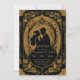 Silhueta elegante de noiva e noiva rodeada por ornamentados e embelezamentos. A design é feita numa luxuosa combinação de ouro e preto, que expele elegância e sofisticação. Os detalhes intrincados dão ao convite um toque romântico e clássico.