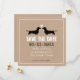 Convite de casamento personalizado com silhuetas de Dachshund e papel kraft com coração. Um anúncio divertido para um casal de noivos que ama cães salsicha. Personalize este convite de casamento original com o nome do casal feliz e as informações do dia do casamento. Visite o Jenn's Doodle World para ainda mais produtos de planejamento de casamento com este lindo design de Doxie e mais convites de casamento de raças de cães.