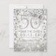 Design de "50ª Festa de aniversário" elegante com Silver Glitter Confetti & Glam Lights, nome personalizado e texto de detalhes. Fácil de usar e fácil de personalizar. Peça a sua hoje!