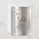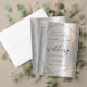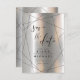 As peças nesta suíte de casamento, como este empolgante cartão 'Salve a Data', apresentam sotaques modernos, escritos à mão e um elegante fundo metálico de prata sobreposto com um delicado padrão geométrico em preto básico. As iniciais da noiva e do noivo no verso e todas as palavras "Salvar a Data" na frente podem ser personalizadas usando o modelo fornecido. Procure ID648 para ver todas as peças neste conjunto elegante.