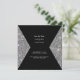 Silver Glitter e Estilo de Envelope Preto Quadrado. Foto: Casamento Salve a Data. De volta com sobrenomes de Foto da Noiva e do Groom, assim como o texto Casamento. Confiador de Silver Glitter. Site. Filtro preto e branco aplicado à foto.