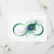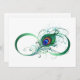 O símbolo do infinito com uma pena brilhante, verde, de pavão artístico sobre um fundo branco. Tatuagem.