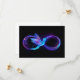 Símbolo luminoso, roxo e infinito com beija-flor azul voadora, luminosa, em fundo preto. Neon.