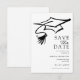 Announce your graduation celebration with this simple and elegant black and white save the date card. Featuring a hand-drawn graduation cap with tassel, this design brings a modern and artistic touch while keeping a clean and timeless look. The minimal layout and classic typography make it easy to read and visually appealing.