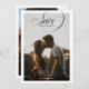 A beautiful save the date card with a simple white border and elegant typography. Features two large, portrait orientation photos, showcasing your special moments shared together. The oversized calligraphy script that bleeds over the photo and border adds a touch of drama and romance, while the minimal layout ensures a stylish and modern aesthetic. Perfect for couples seeking a trendy yet classic wedding announcement. Your guests cherish this unique two-sided design and it will set the tone for your beautiful wedding day.