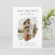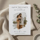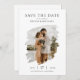 Simple wedding save the date with photo in watercolor brush stroke frame and elegant modern typography.