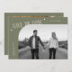 Modern and stylish save the date card featuring a modern typography text that says "save the date." One photo in the font and one on the back. The background is sage green.
