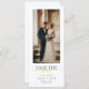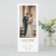 Send a save the date that is modern, elegant, and simple to make your own. The tall bookmark design uses soft gold script and a single photo to capture your moment. Personalize it with your names, date, and a message for a keepsake your guests will want to keep.