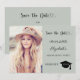 A photo Save the date card for a graduation.