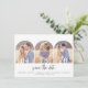 Our Simple Three Arch Photo Wedding Save the Date card is a timeless and elegant choice to announce your special day. This design is all about putting your cherished memories front and center, allowing your love story to take center stage. The front of the card showcases a minimalist and sophisticated design with three graceful arches that beautifully frame three of your favorite engagement photos. Customize the bottom of the card with all the essential details of your wedding